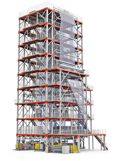 Otro punto destacado de la visita fue una máquina de película soplada agrícola de cinco capas y 16 metros de coextrusión, que pronto será enviada a Brasil.